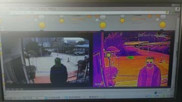 香港路办公入口启动热成像智能人体测温系统,通过无接触快速测量体温,迅速排查发热情况,若体温超过37摄氏度,严禁入内。